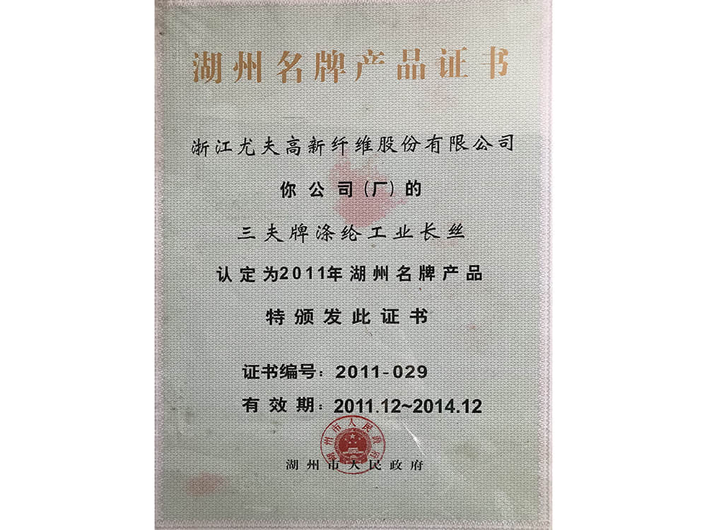 • 湖州名牌產品證書2011