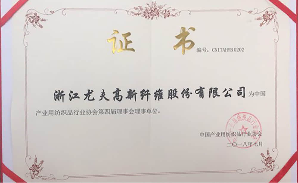 • 產業用紡織品行業協會第四屆理事會理事單位(2018年7月)